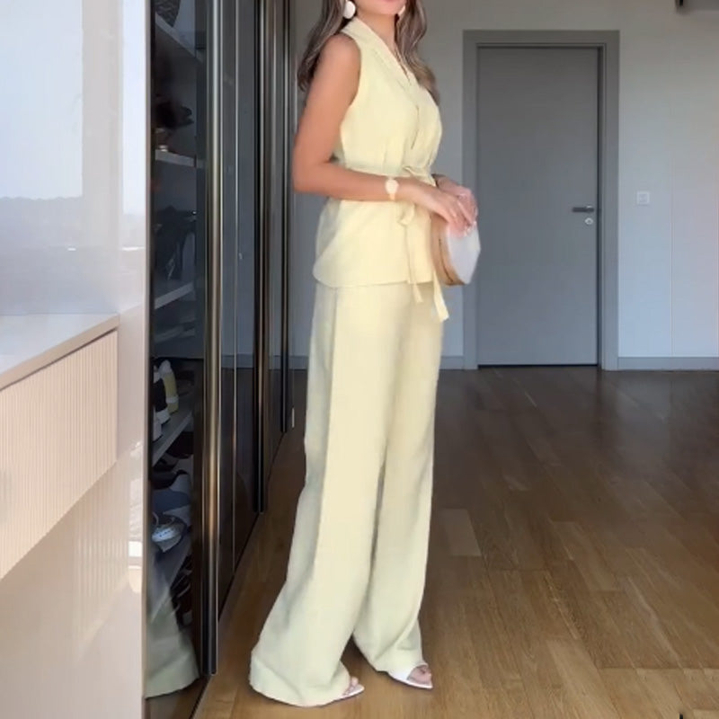 V-Neck Sleeveless Top and Straight-Leg Pants 2-piece Suit