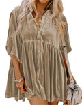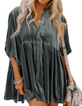 This modern muse tunic dress is crafted with luxe velvet fabric that offers a flattering 3/4 sleeve collar button-down. It is tiered back and high-low hem add a unique and elegant flair. Be the modern muse in this timeless dress.