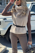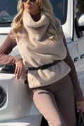Warm and Stylish Shaggy Eco-fur Stand Collar Side Slit Vest