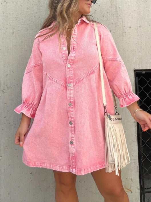 Stay on top of the season's trends with our new shirt dresses. We especially love the solid denim and think this piece will be a new addition to your wardrobe!