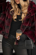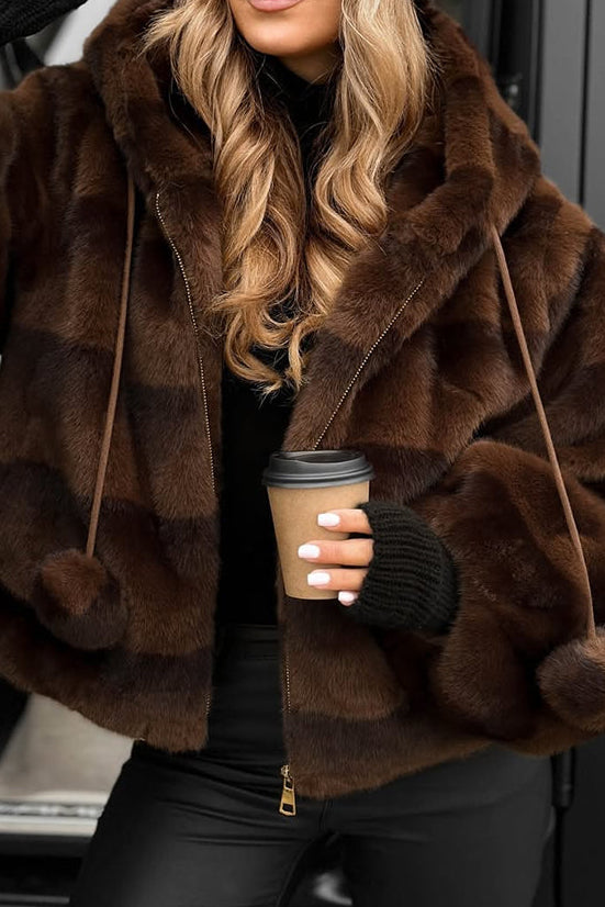 Winter Latte Gradient Print Ribbed Balloon Sleeve Hooded Loose Plush Coat
