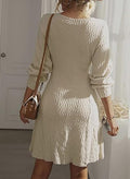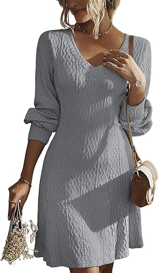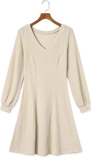Women's V Neck Knit A Line Long Sleeve Dress Sweater Dress