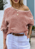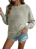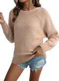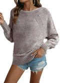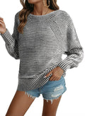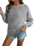 Women Boat Neck Batwing Sleeve Oversized Pullover Sweater Tops