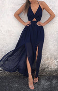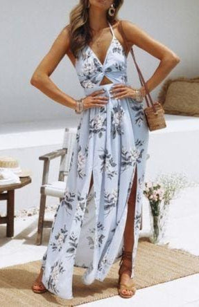Women Boho Maxi Long Dress Sundress Floral Halter Dress
