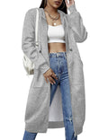 Wrap yourself in cozy elegance with this chunky cable-knit cardigan. Its oversized fit, detailed with intricate stitching and practical pockets, makes it the perfect blend of style and comfort. This open-front cardigan is a wardrobe staple for effortless layering. Pair it with jeans for a chic, relaxed look.