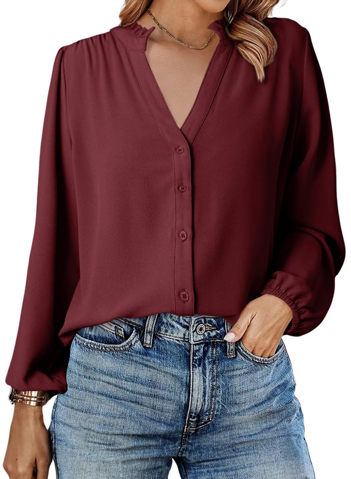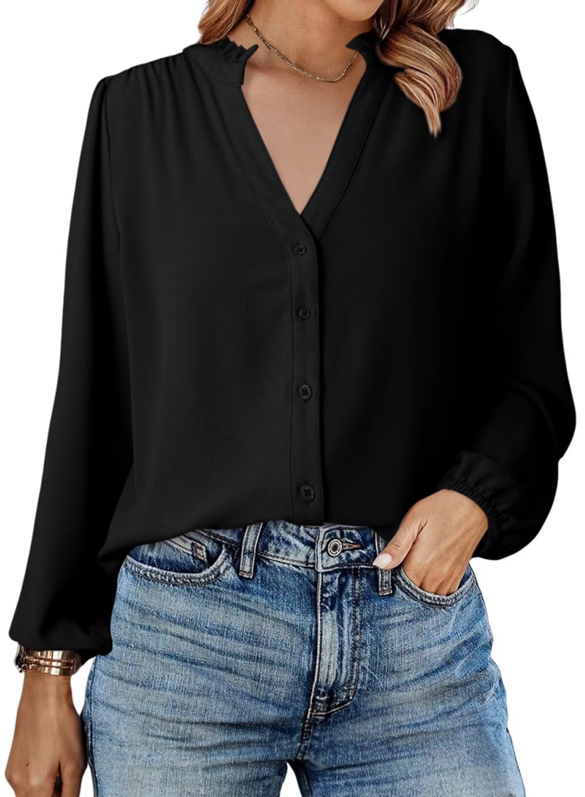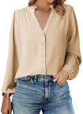 Women Dressy Casual Button Down Shirts V Neck Long Sleeve Shirts