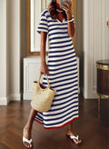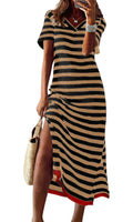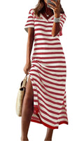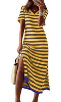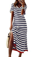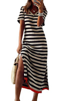 Women' Fashion Striped Short Sleeve Maxi T Shirt Dress