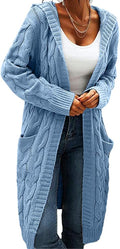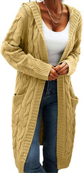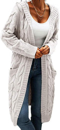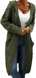 Women Hooded Open Front Cardigan Cable Knit Sweaters Chunky Long Sweater Coats