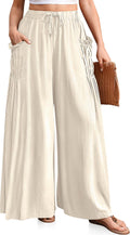 Women Linen Wide Leg Drawstring Palazzo Pants