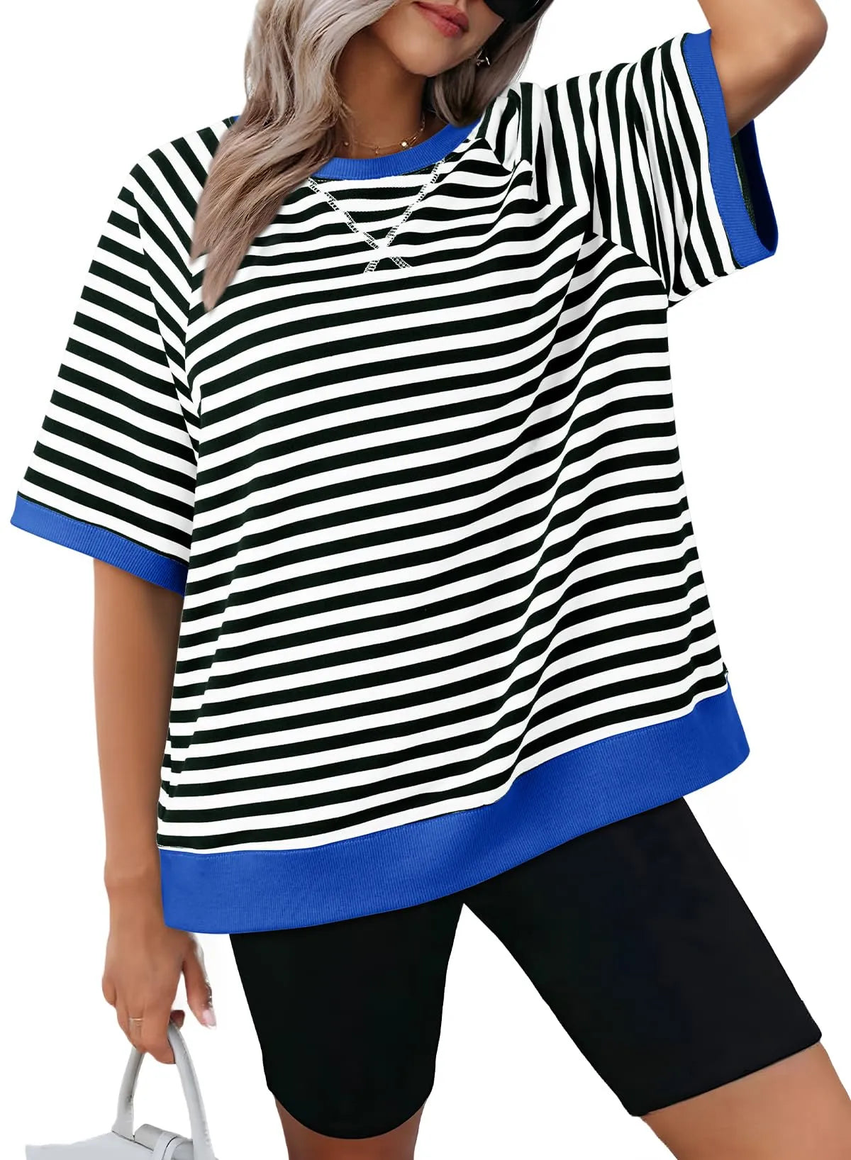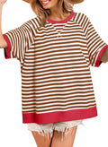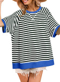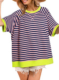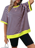 Women Oversized Striped Color Block Crewneck Short Sleeve