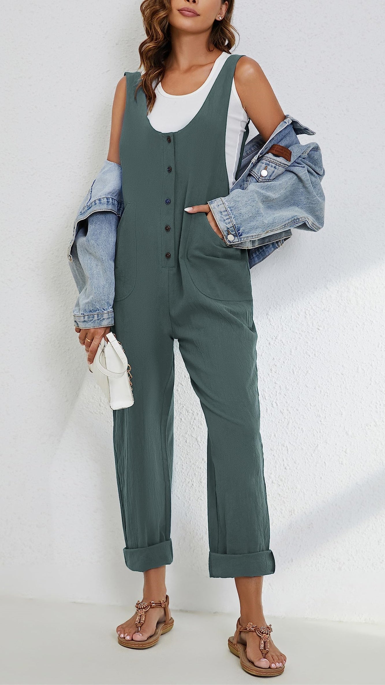 Stay on trend this season in our Button Up Jumpsuits. We especially love the plain fabric and think this piece will be a new favorite in your closet!