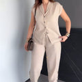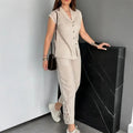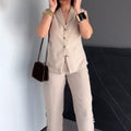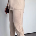LIGHTWEIGHT FABRIC FOR ALL-DAY COMFORT - Crafted from premium, breathable fabric, this set offers a luxurious feel against the skin while keeping you cool and comfortable. The material drapes beautifully, enhancing both the top and pants for a sleek, put-together look.