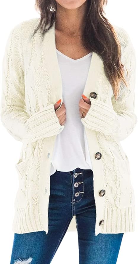 Women‘s Chunky Cable Knit Casual Cardigan Solid Color Button Down Open Front Loose Sweater Outwear