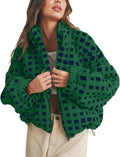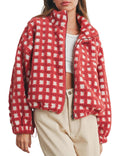 This stand-up collared checked jacket features vibrant colors, is incredibly soft against your skin, and zips shut. Perfect for casual everyday wear, it's the perfect addition to your wardrobe.