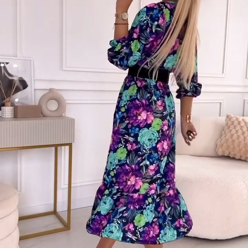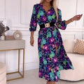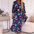 Women’s Elegant Floral Print V-Neck Side Slit Dress