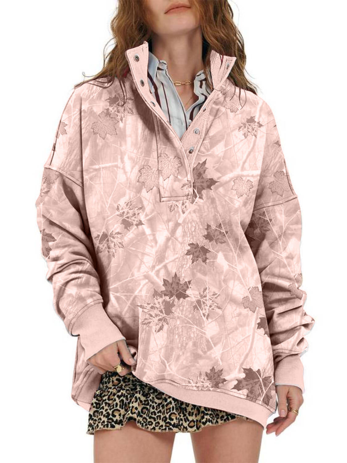 Women’s Oversized Fall Maple Leaf Camo Hoodie
