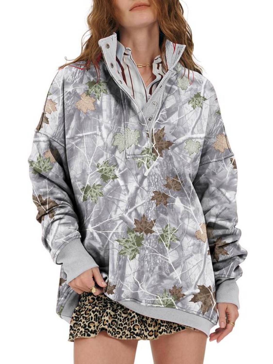 Perfect for blending in with fall! This oversized camo pullover is made from high-quality fabric that's soft, skin-friendly, warm, stretchy, and comfortable. Keeps you cozy in cold weather without sacrificing style.