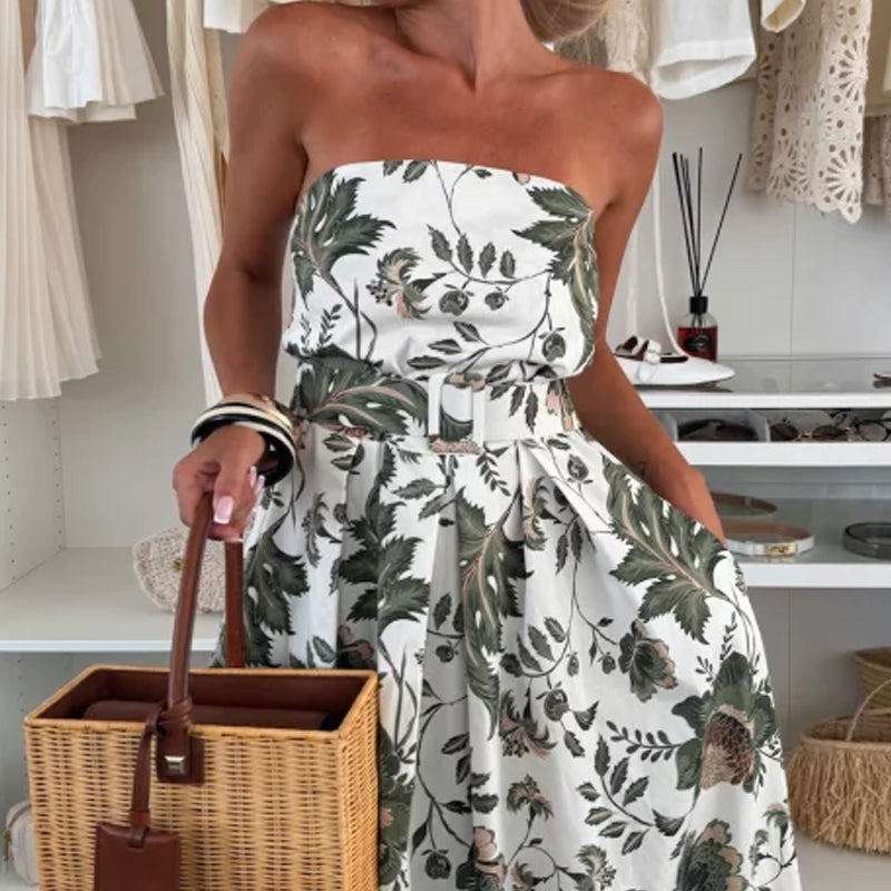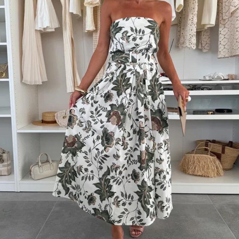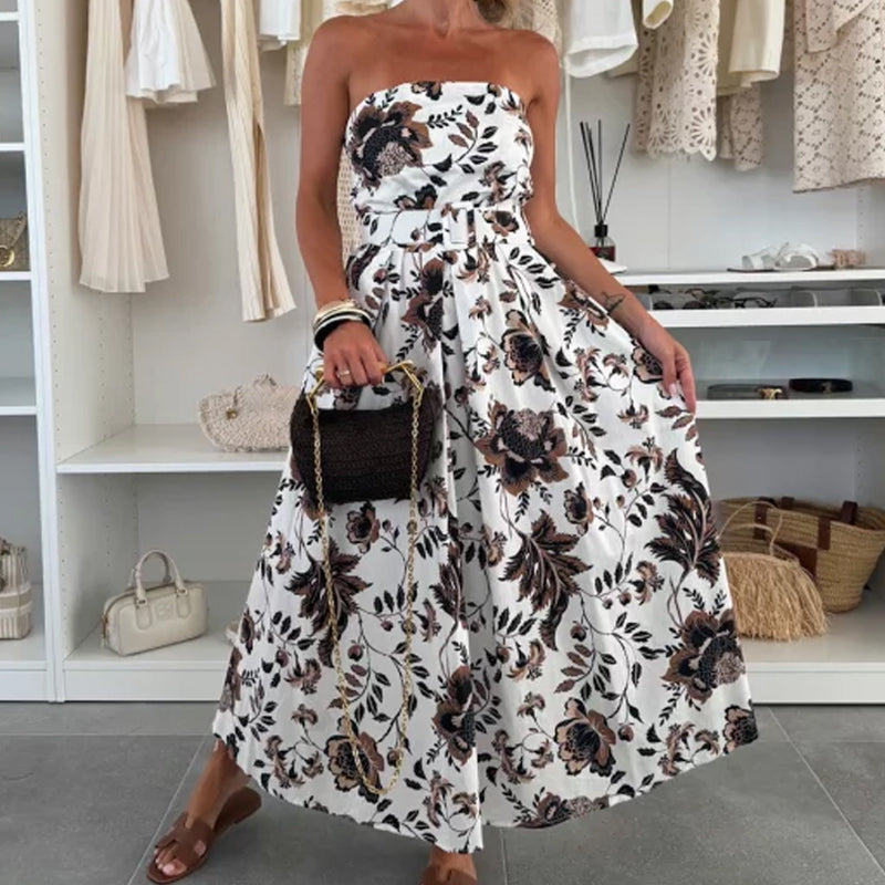 Package Includes: 1* Women’s Printed Strapless Maxi Dress