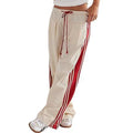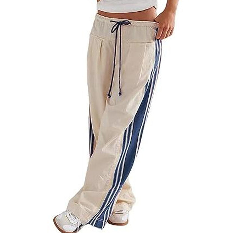 Package Includes: 1 * Women’s Striped Drawstring Wide-Leg Pants with Pockets