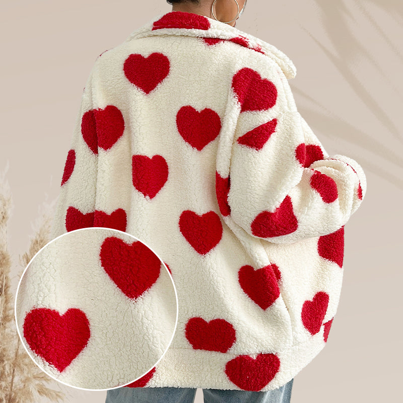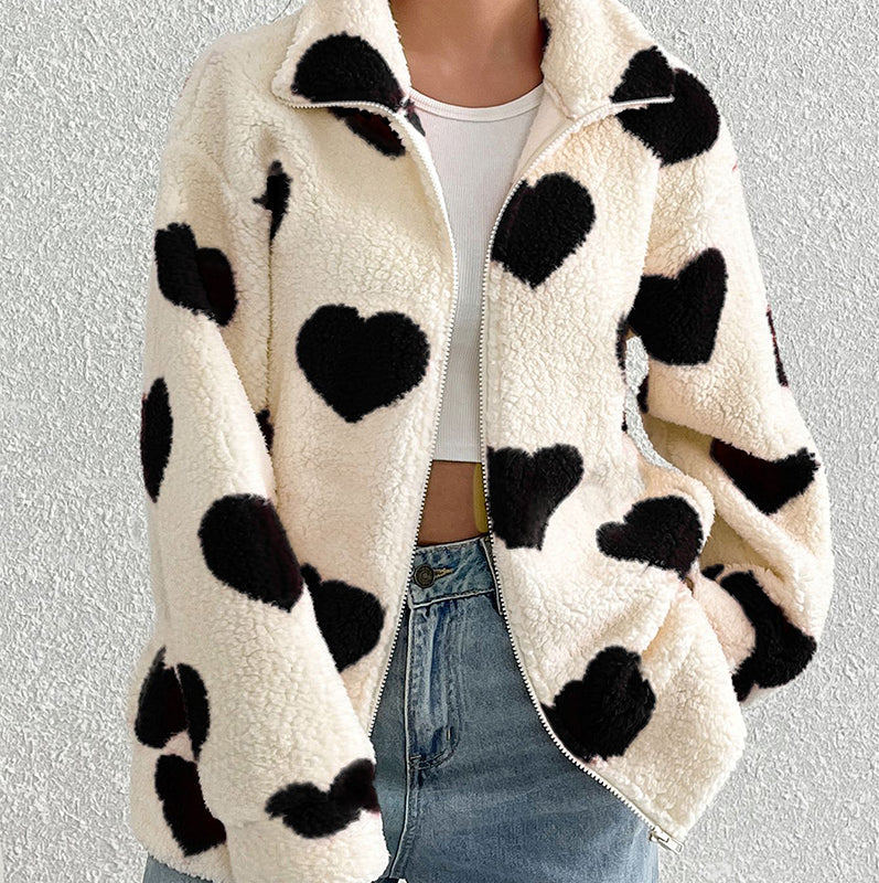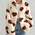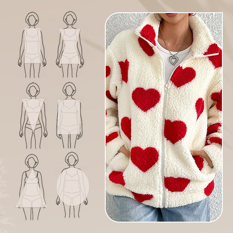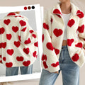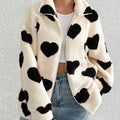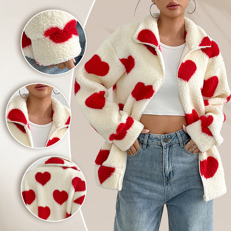 Women’s Warm Heart Print Full Zip Coats