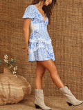 Women Summer Ruffle Sleeve Floral Mini Dress