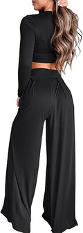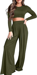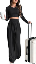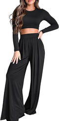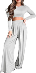Women's 2 Piece Lounge Sets Fall Long Sleeve Crop Tops Outfits Wide Leg Pants Tracksuits
