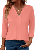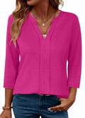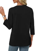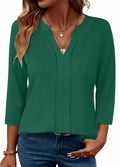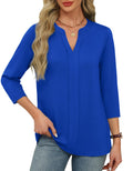 Womens 3/4 Length Sleeve Tops V Neck Pleated Work Blouses