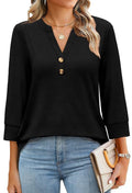 Womens 3/4 Sleeve Heley Button V neck Tops