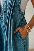 For slow Saturdays, summer concerts, and feeling like the main character. The jumpsuit that does all the things. With its vintage-style mineral wash and pintuck detailing, this one-piece wonder gives major retro energy while keeping things breezy and modern. The wide-leg silhouette flows with every step, and the adjustable drawstring bodice cinches in just enough to flatter. Oh—and pockets, because obviously. This is what happens when easy meets edgy, and your wardrobe wins.