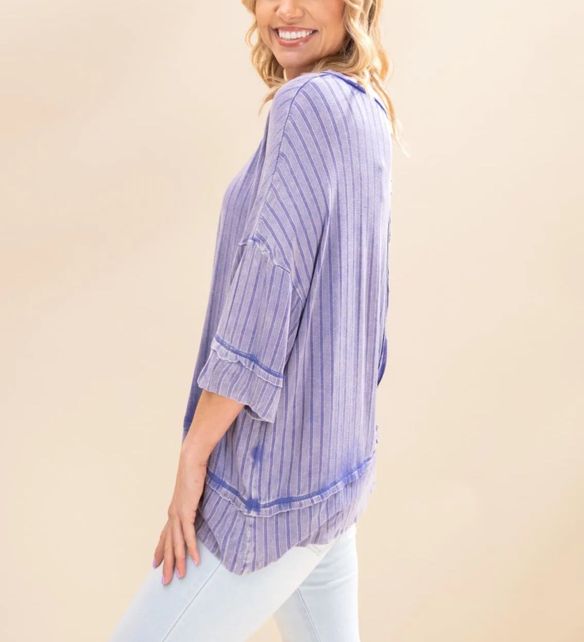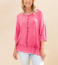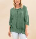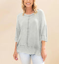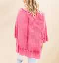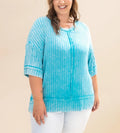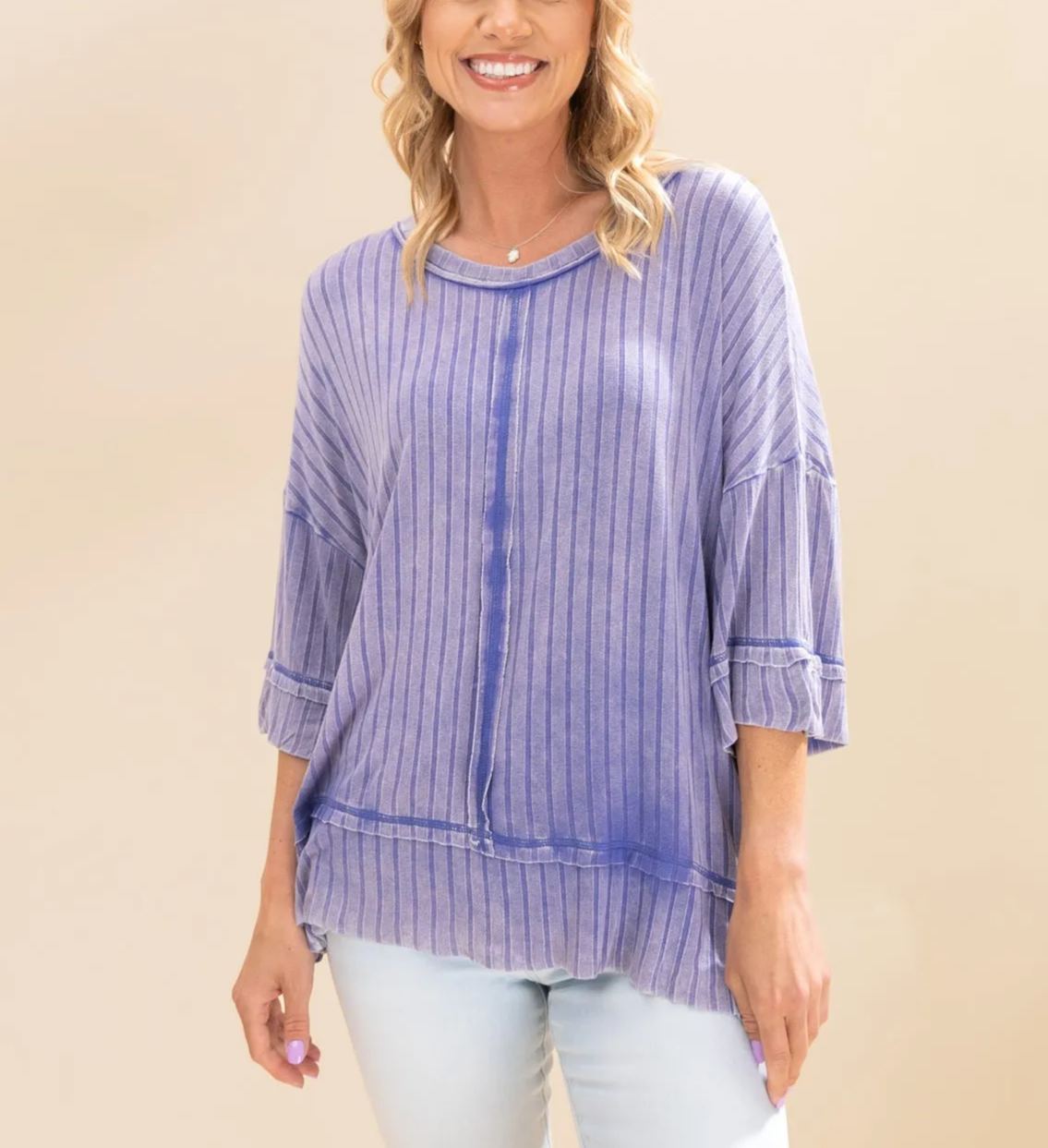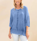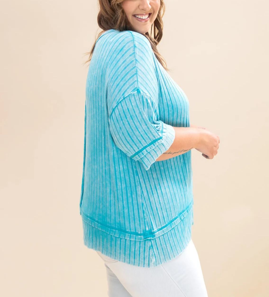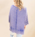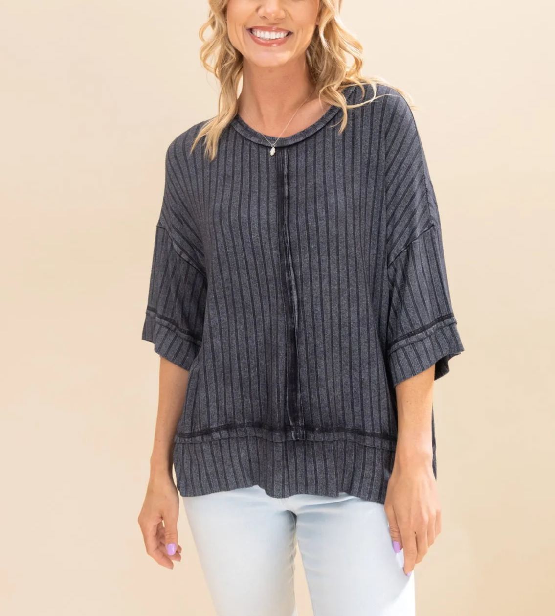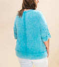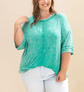 Women's Acid Washed Ribbed Drop Shoulder Half Sleeve Boat-Neck Top