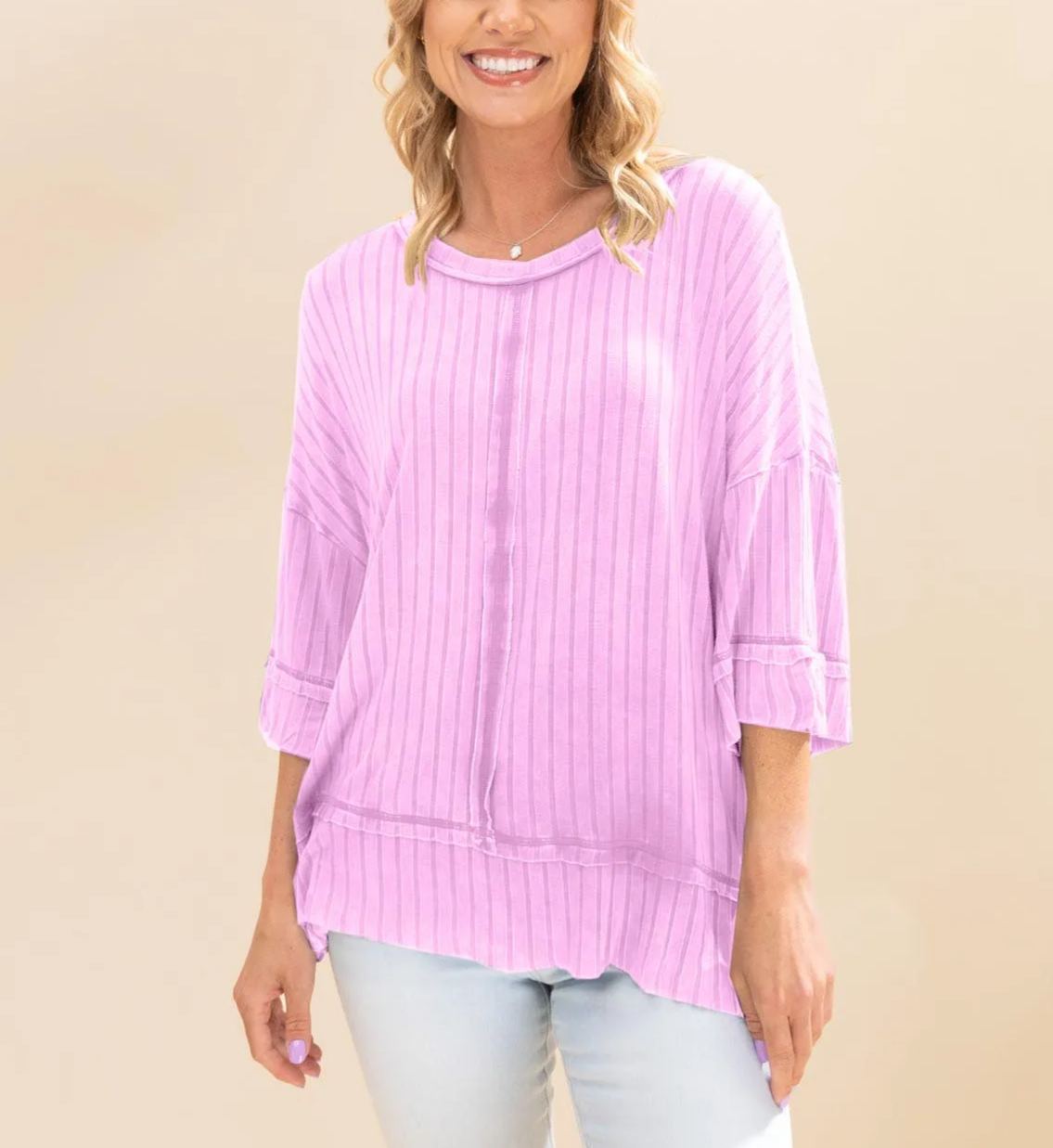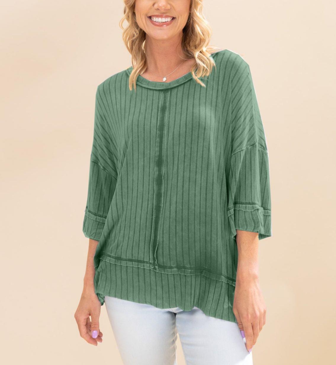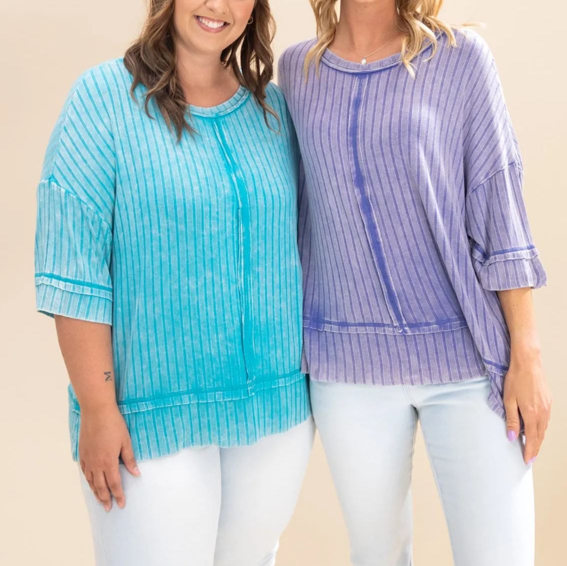 Made with washed ribbed fabric and featuring exposed seam detail, this top will add a unique touch to any outfit. With a boat-neck and drop shoulder, it offers a relaxed and flattering fit. Each top is one-of-a-kind, with variations in color and finishing.