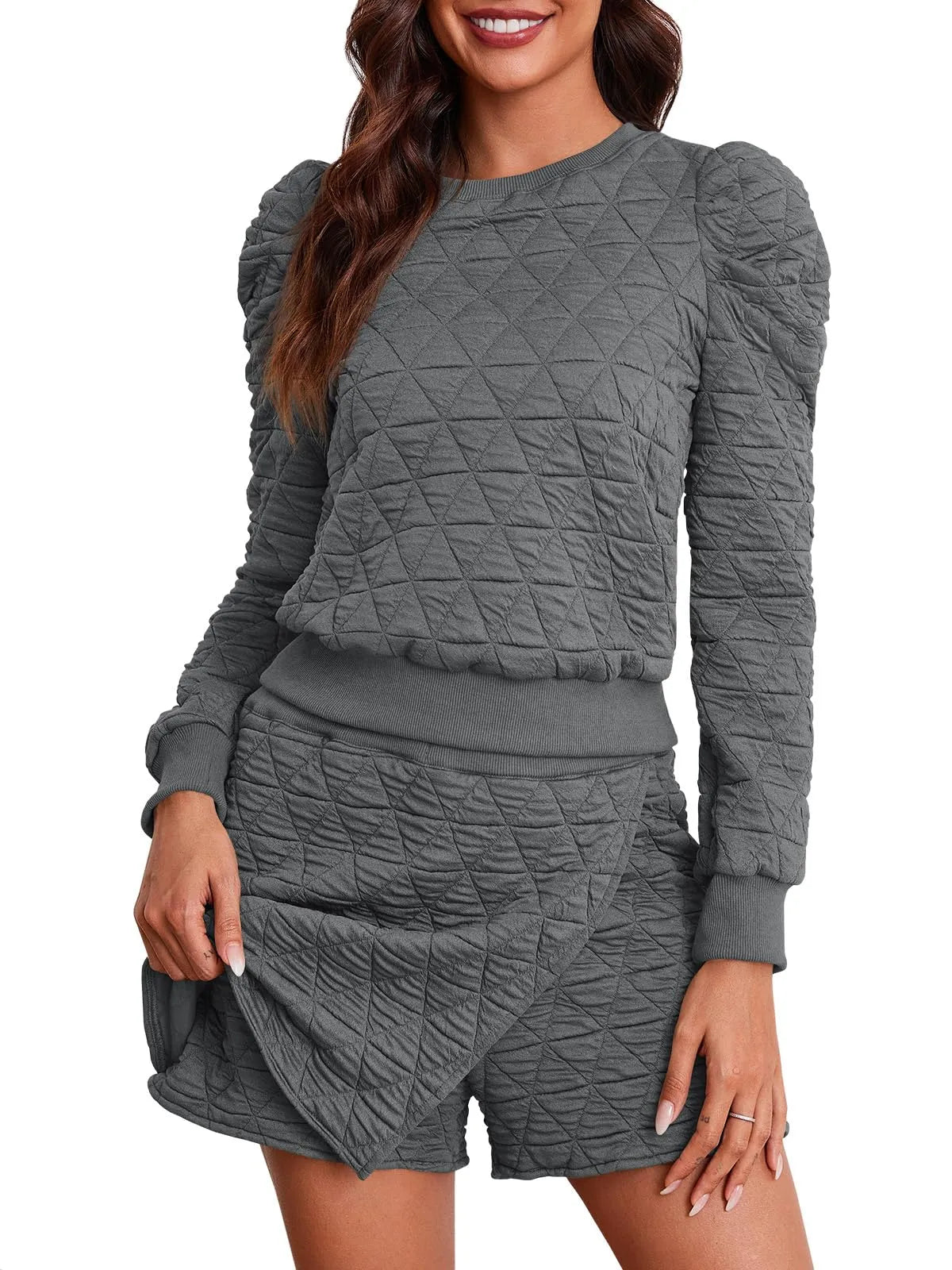 Women's Argyle Sweatshirts And Wrap Skorts Casual Set