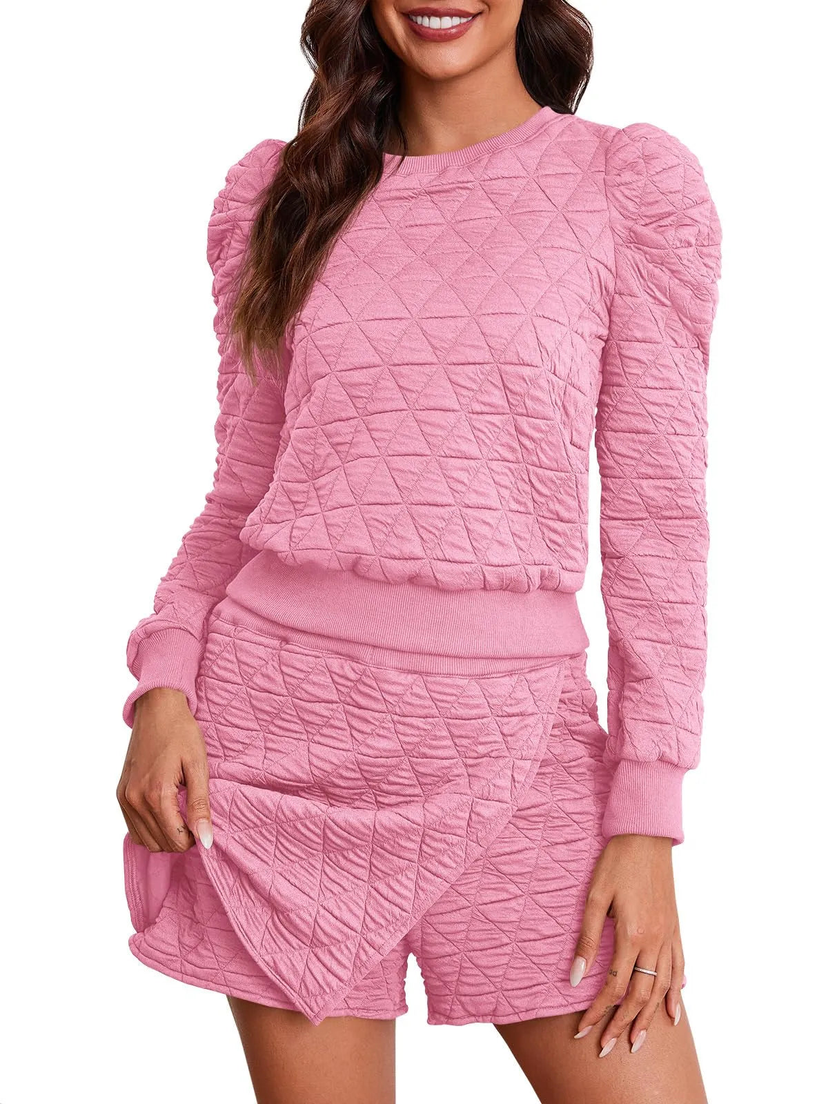 Feature an eye-catching argyle print, adding a classic yet trendy twist. The sweatshirt's long sleeves, adorned with delicate ruffles, provide an extra layer of coziness and lend a touch of playful charm. The pattern infuses a sense of luxury, making it a statement piece even for relaxed settings.