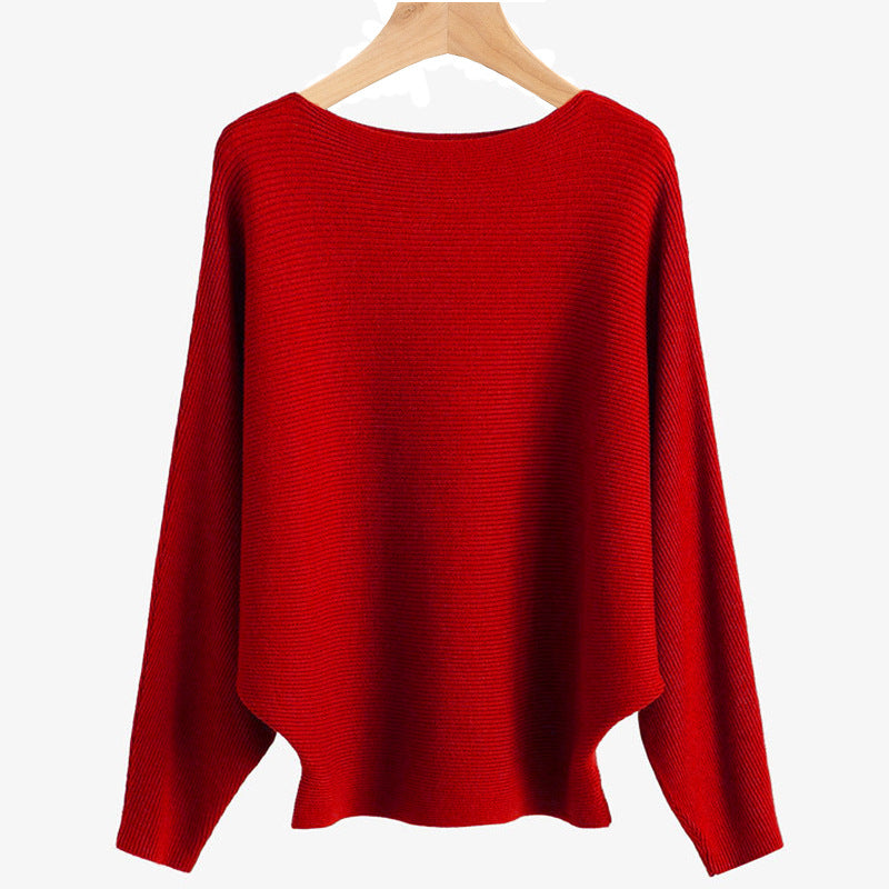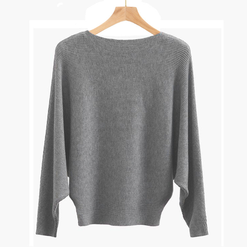 Women's Boat Neck Knit Dolman Sleeve Long Sleeve Sweater Top
