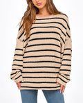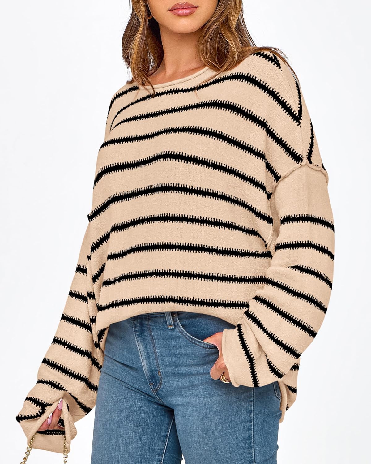 Women's Boat Neck Off Shoulder Oversized Striped Knit Sweaters