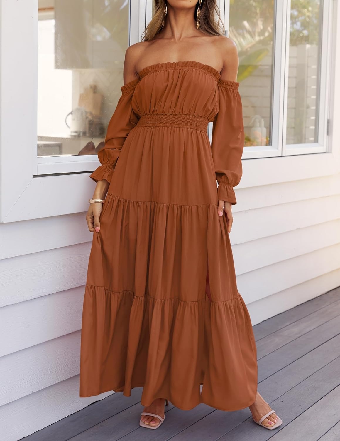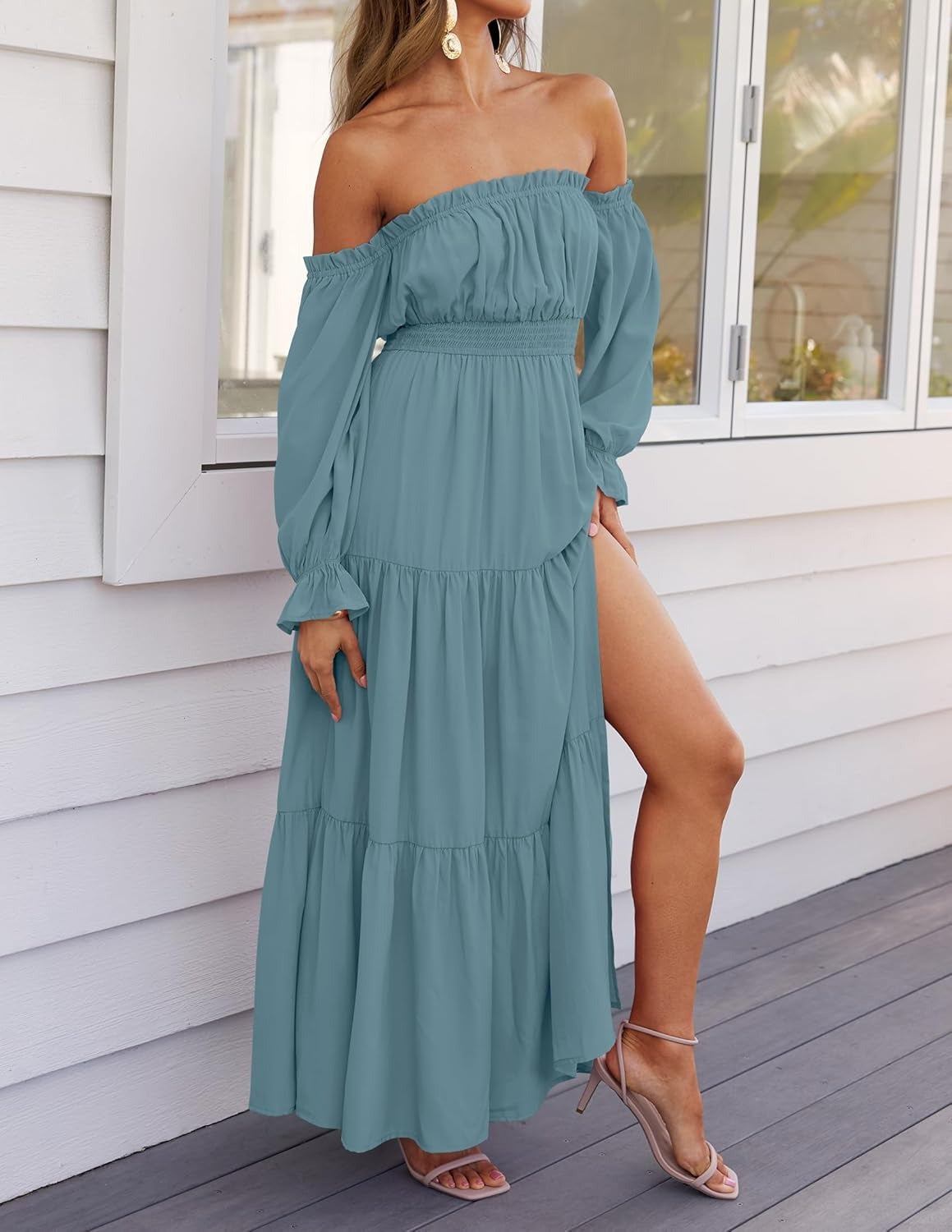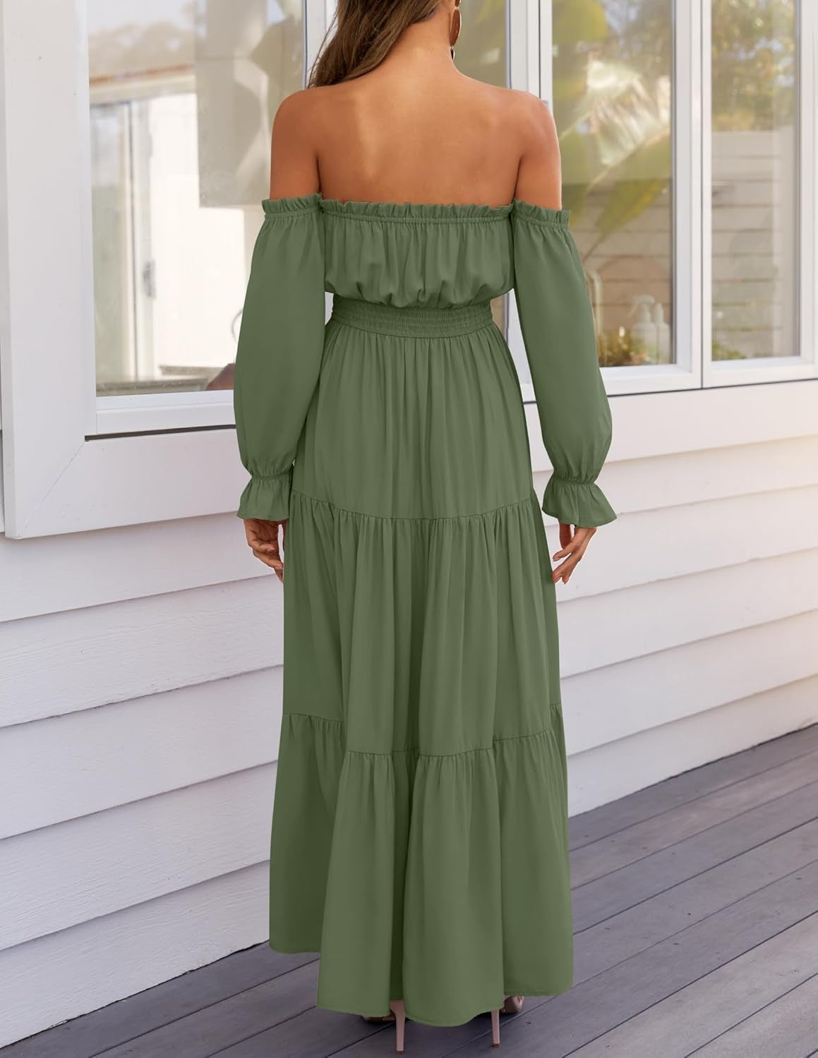 This flowing maxi dress is made of soft and breathable skin-friendly fabric, which makes you more fashionable, and the elastic ruched waist dress shows your body curves. This long-sleeved A-line swing maxi dress is versatile, whether paired with high heels or a jacket, it is your perfect companion.