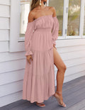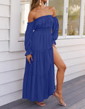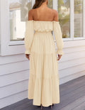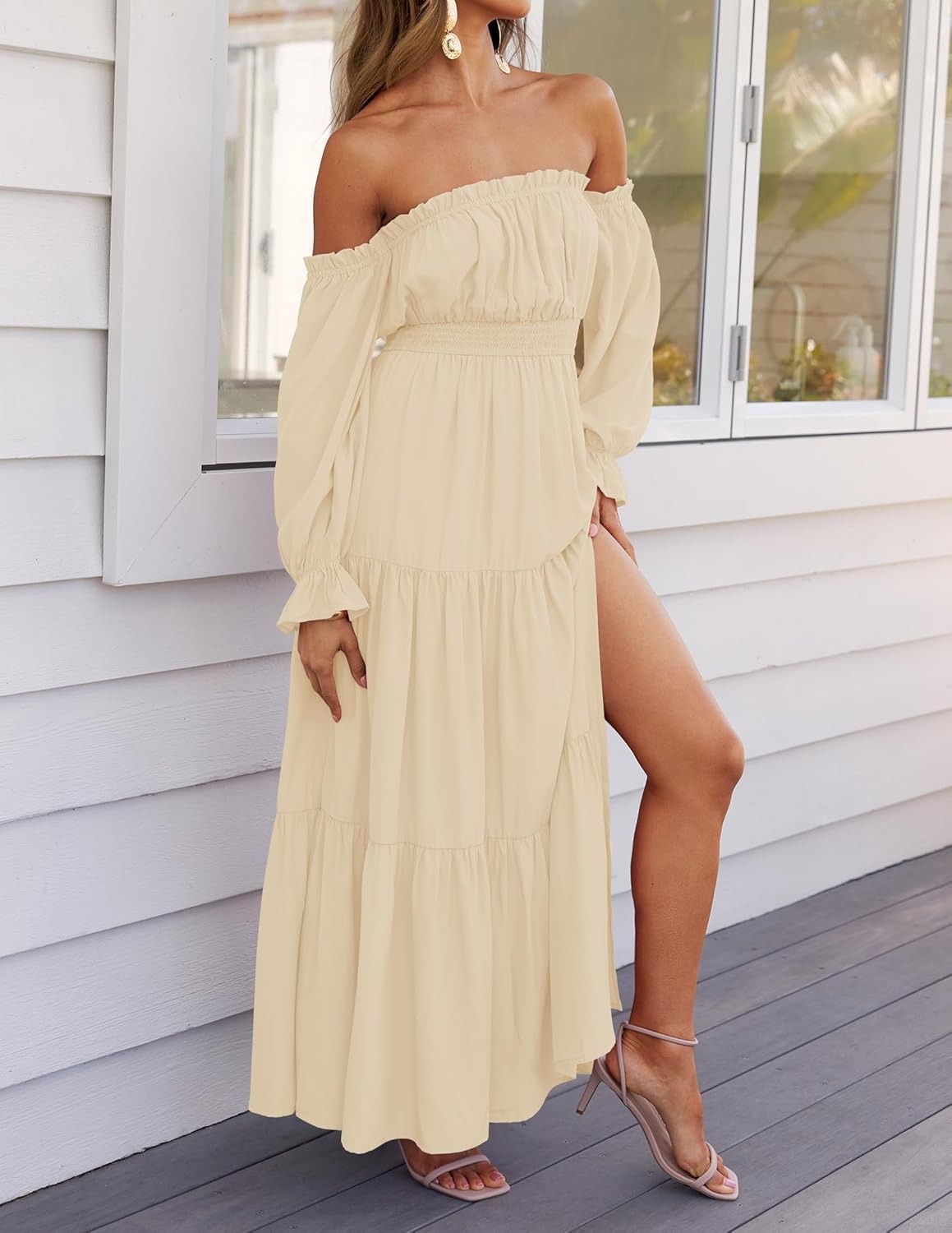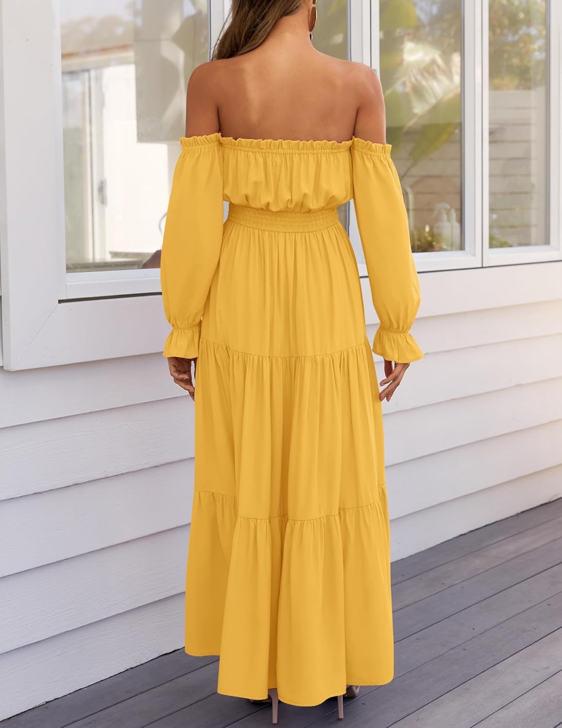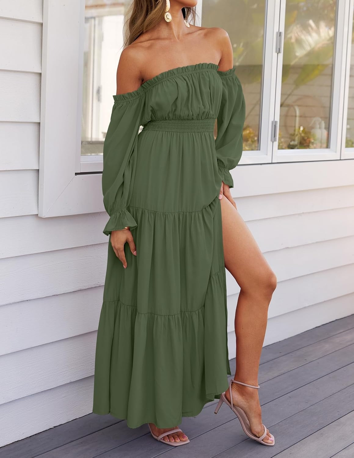 This flowing maxi dress is made of soft and breathable skin-friendly fabric, which makes you more fashionable, and the elastic ruched waist dress shows your body curves. This long-sleeved A-line swing maxi dress is versatile, whether paired with high heels or a jacket, it is your perfect companion.
