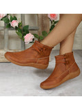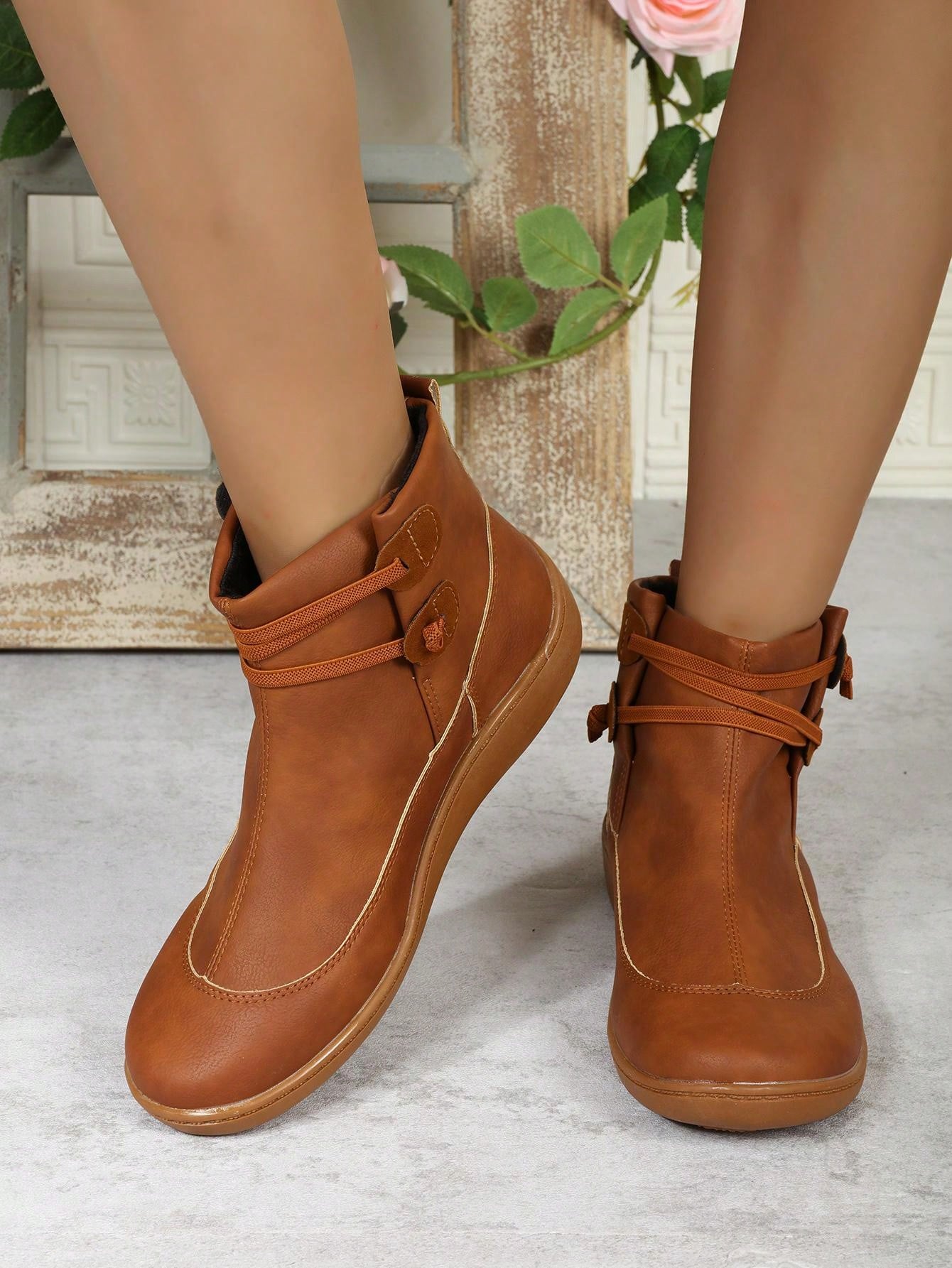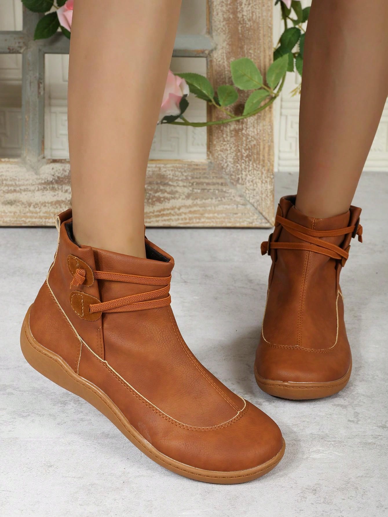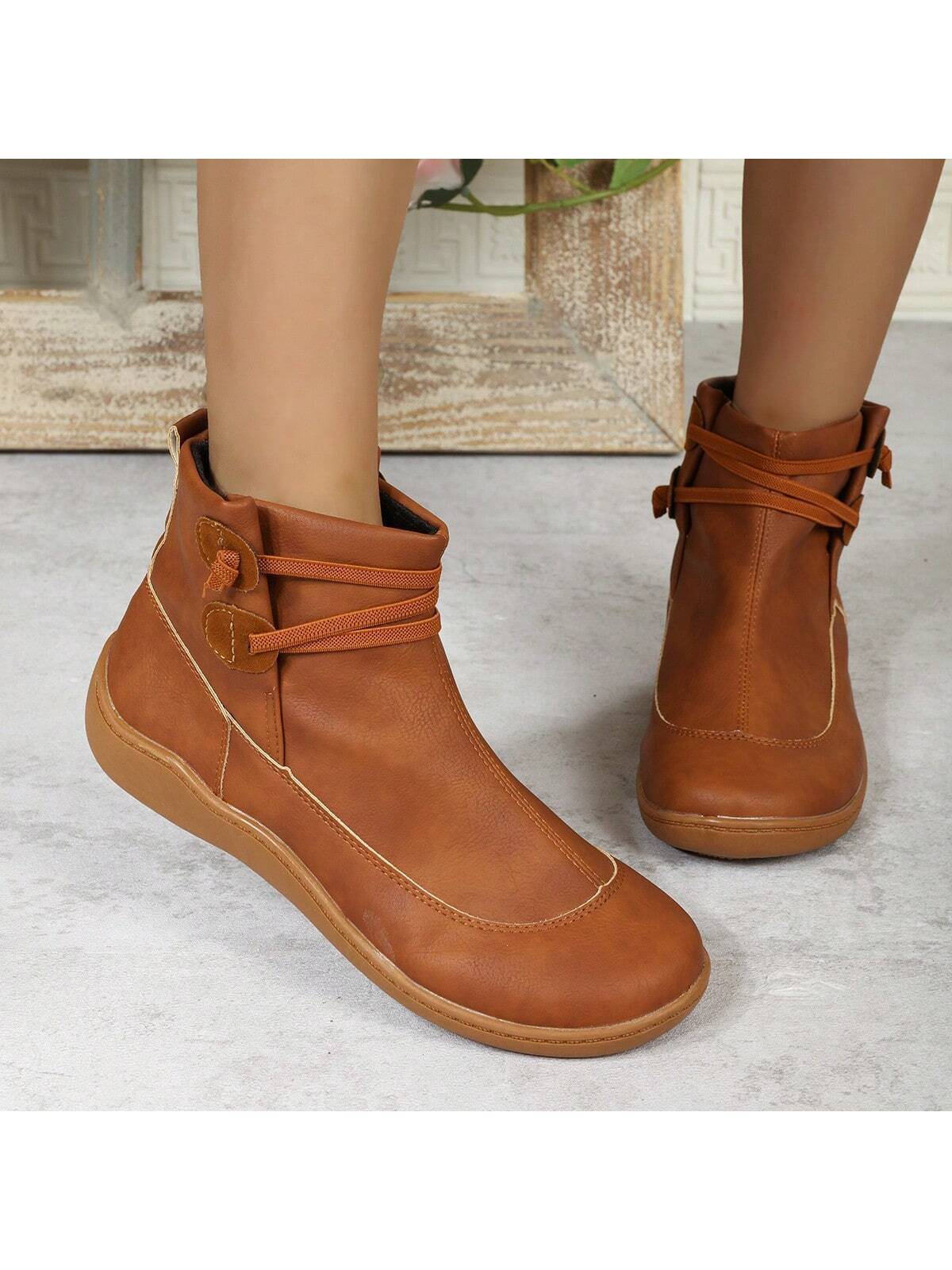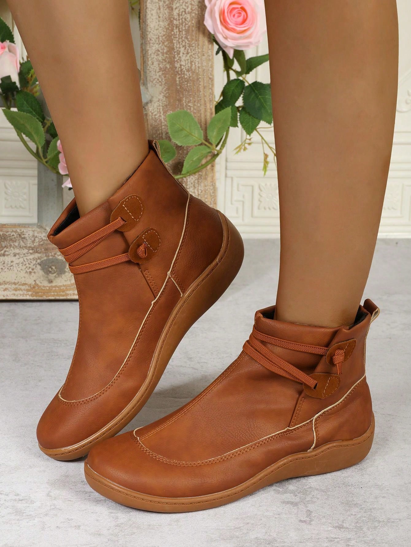 Women's Boots With Plush Lining, British Style Ankle Boots, High Top Flat Shoes, Suitable For Outdoor And Casual Wear