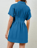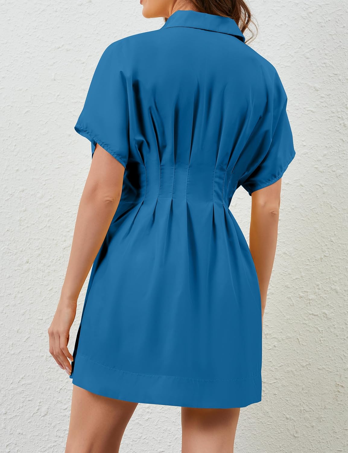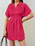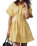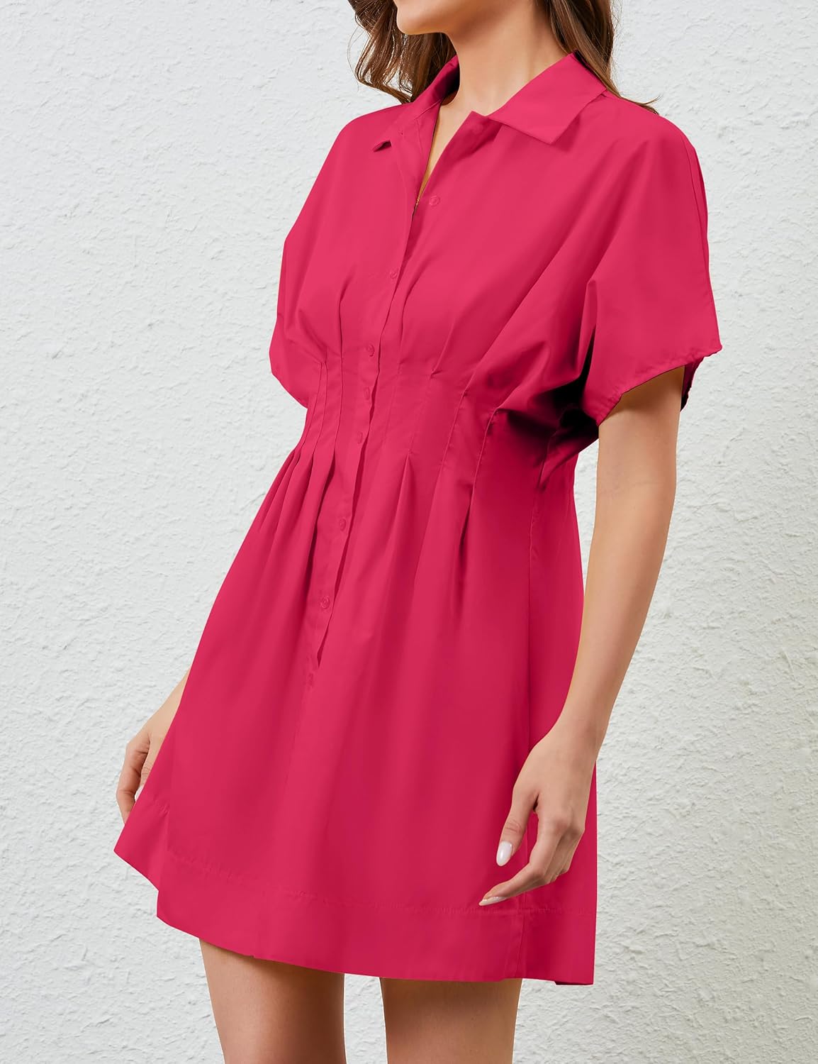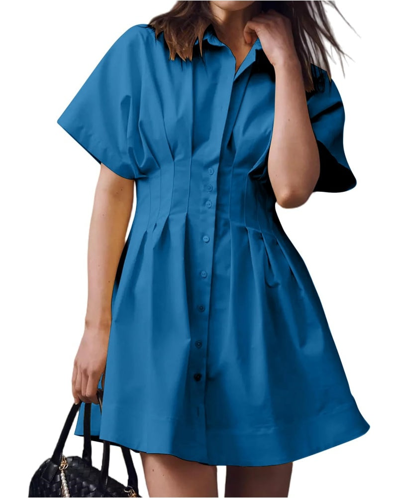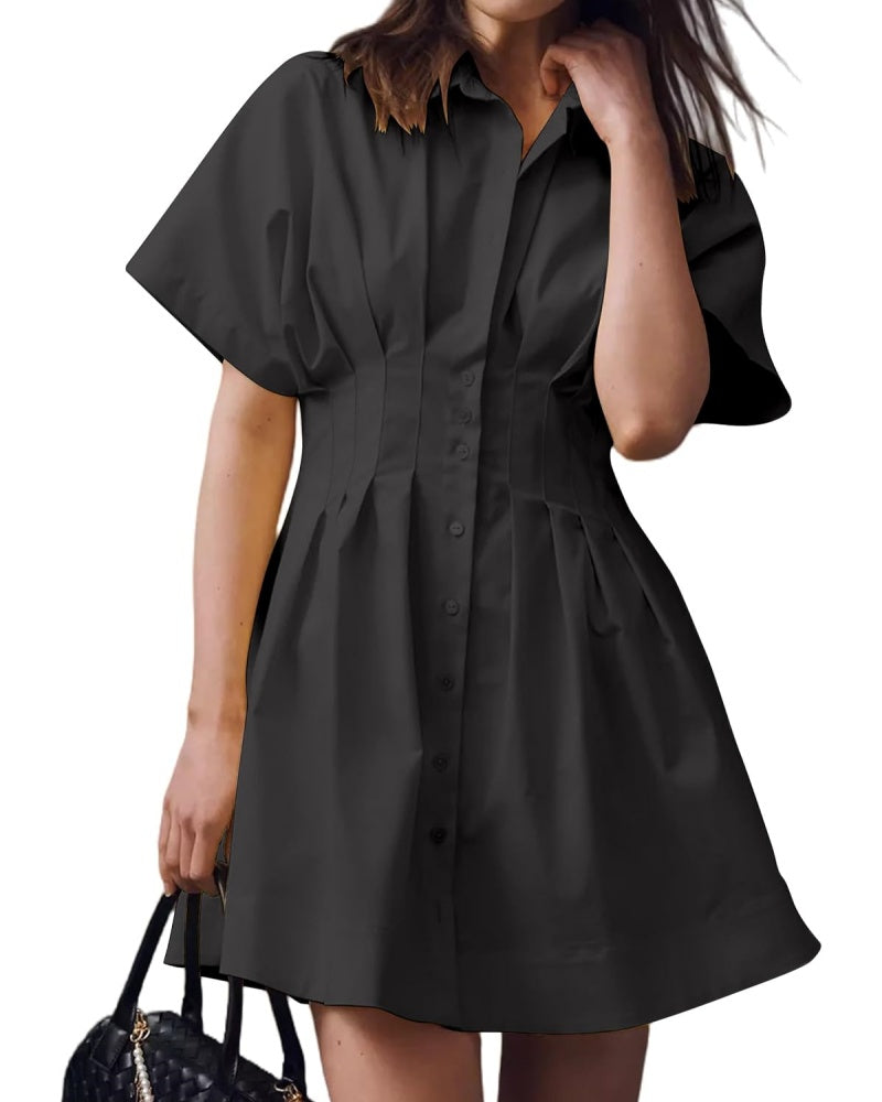 Elevate your wardrobe with the Button-Front Pleated Shirt Dress, featuring a classic silhouette, elegant pleats, and a convenient front button closure. Perfect for both professional and casual occasions, this dress offers timeless style and versatile comfort.