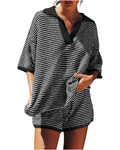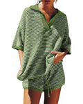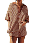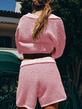 Women's Casual 3/4 Sleeve V Neck Knit Top High Waist Shorts Set