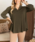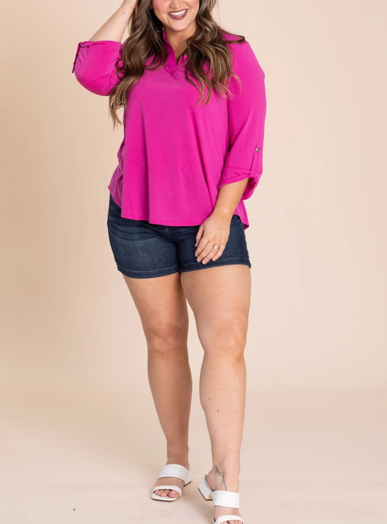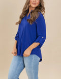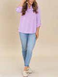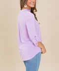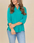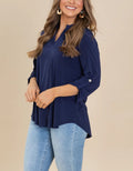 Womens Casual 3/4 Sleeve V Neck Wrinkle Free Top