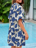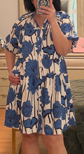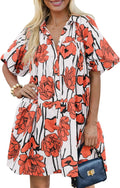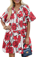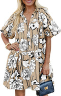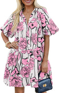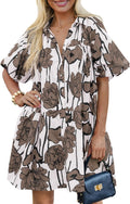 Women's Casual Button Down Floral Puff Sleeve Shirt Dress
