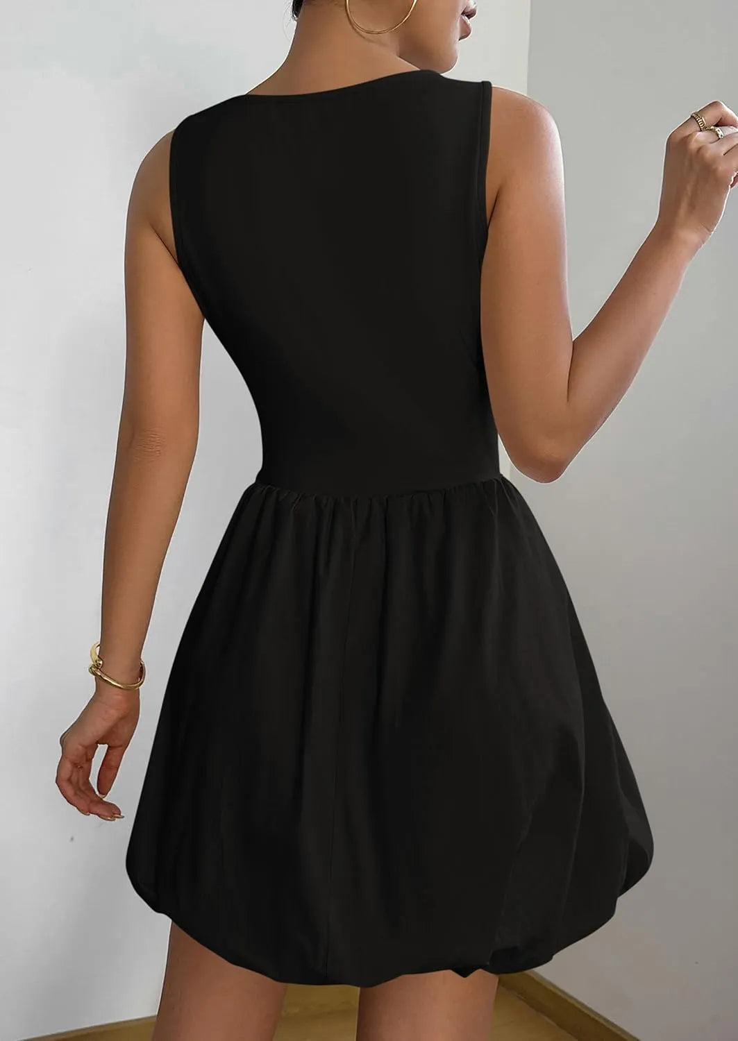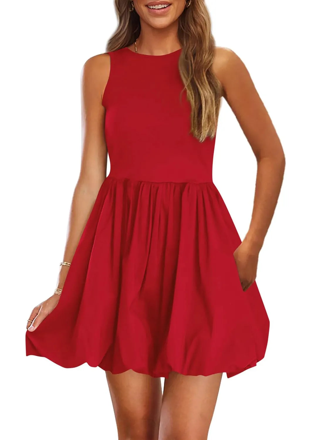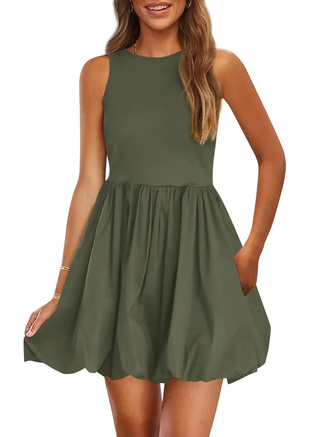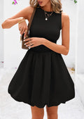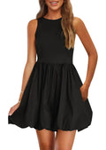 Women's Casual Crew Neck Sleeveless Tank Bubble Dress with Pockets
