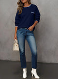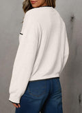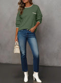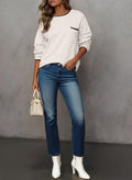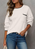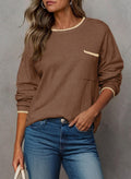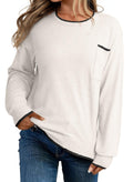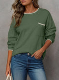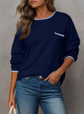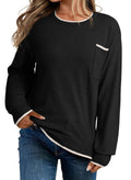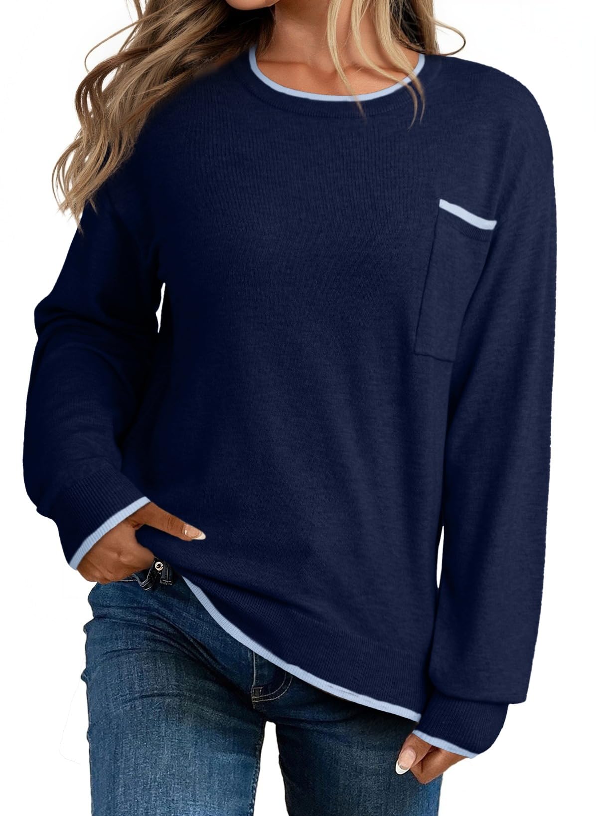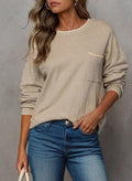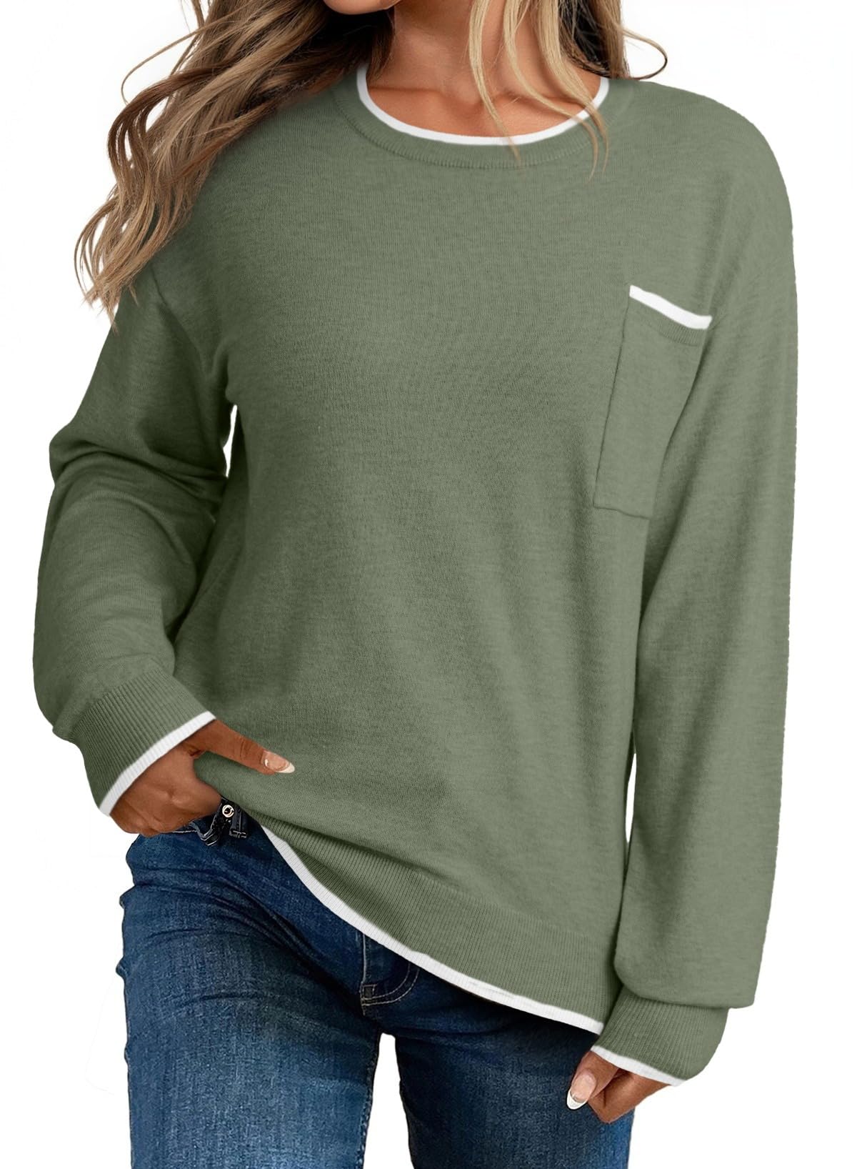 Womens Casual Crewneck Long Sleeve Pullover Sweater with Chest Pocket