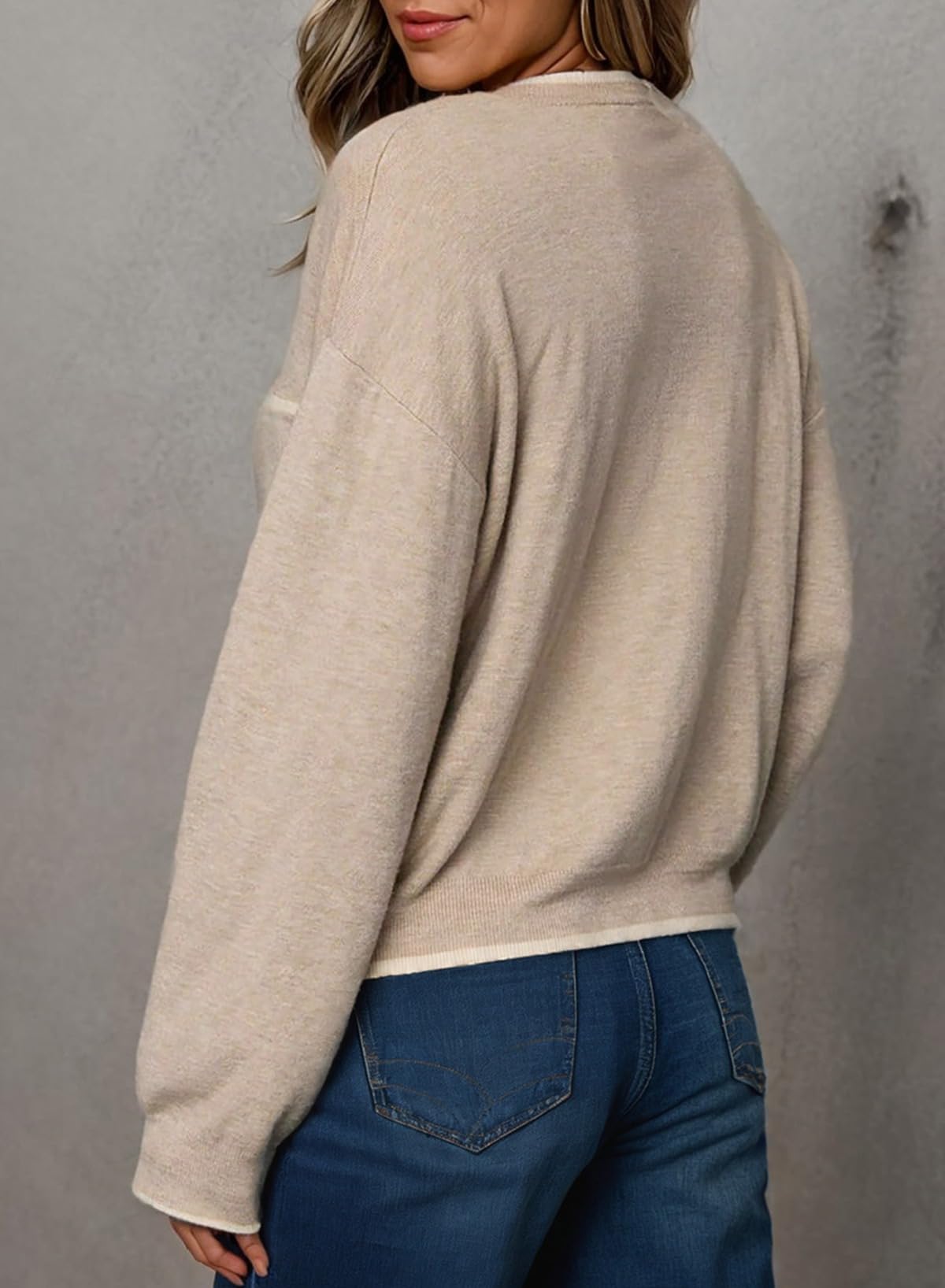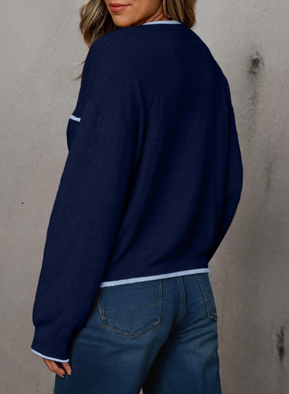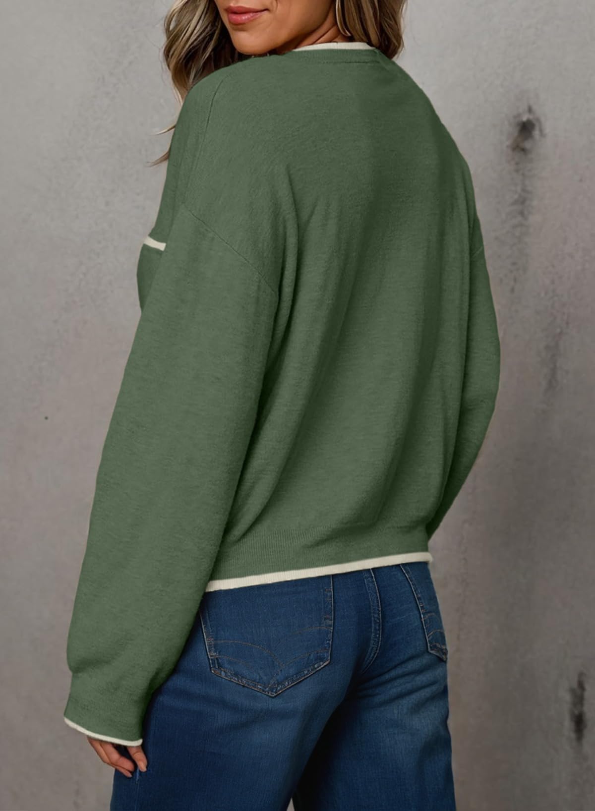Womens Casual Crewneck Long Sleeve Pullover Sweater with Chest Pocket