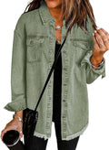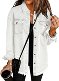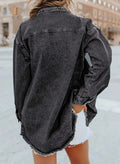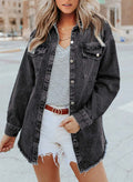 - Feature: Long sleeve, Button Down, Raw Hem, Denim Jacket, Chest Pockets, Distressed