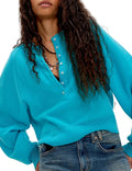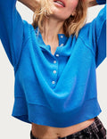 - Henley neckline with button closures
