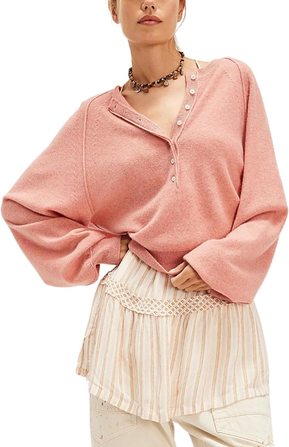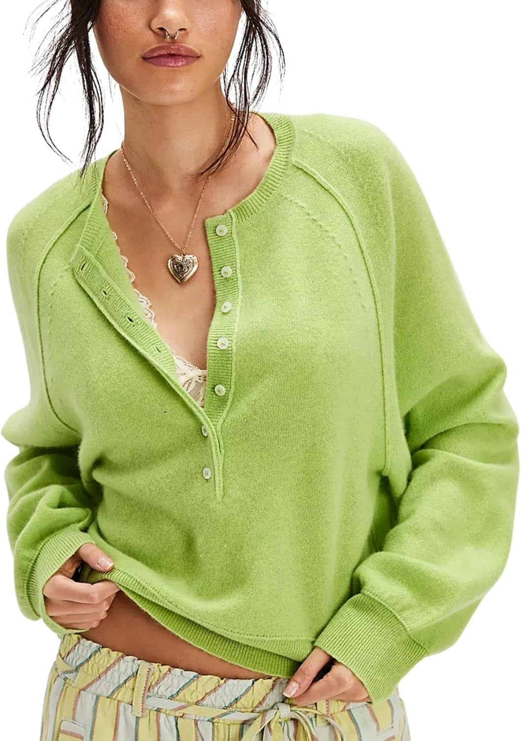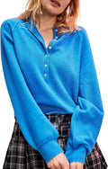 Women's Casual Henley Neck Long Sleeve Knit Button Sweater