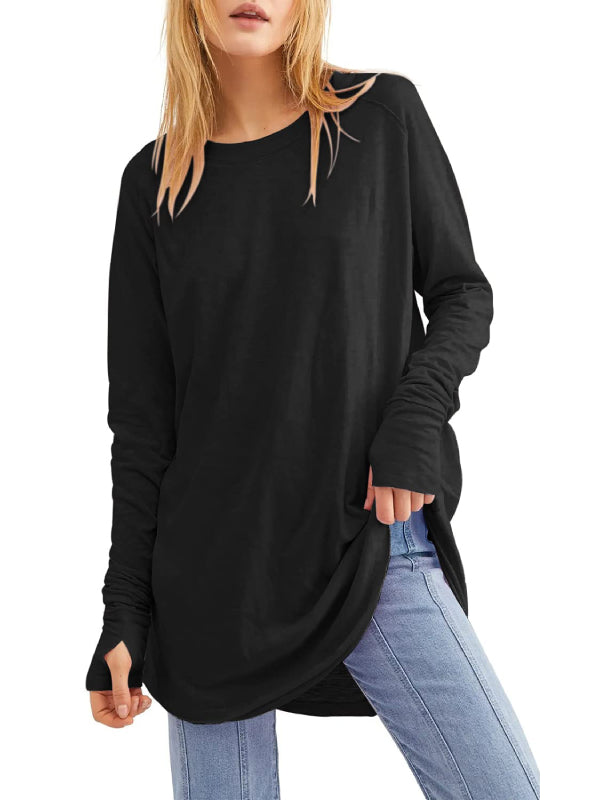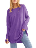 Women's Casual Long Sleeve Hem Loose T-Shirts Tunic Tops