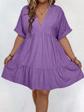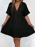 Women's Casual Plain V Neck Batwing Sleeve Dress